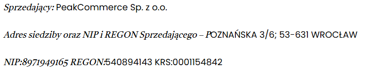 – Klient – jest osobą fizyczną posiadającą pełną zdolność do czynności prawnych, osoba prawna lub jednostka organizacyjna nieposiadająca osobowości prawnej, której ustawa przyznaje zdolność prawną, a także która zawiera ze Sprzedawcą Umowę sprzedaży na odległość.
