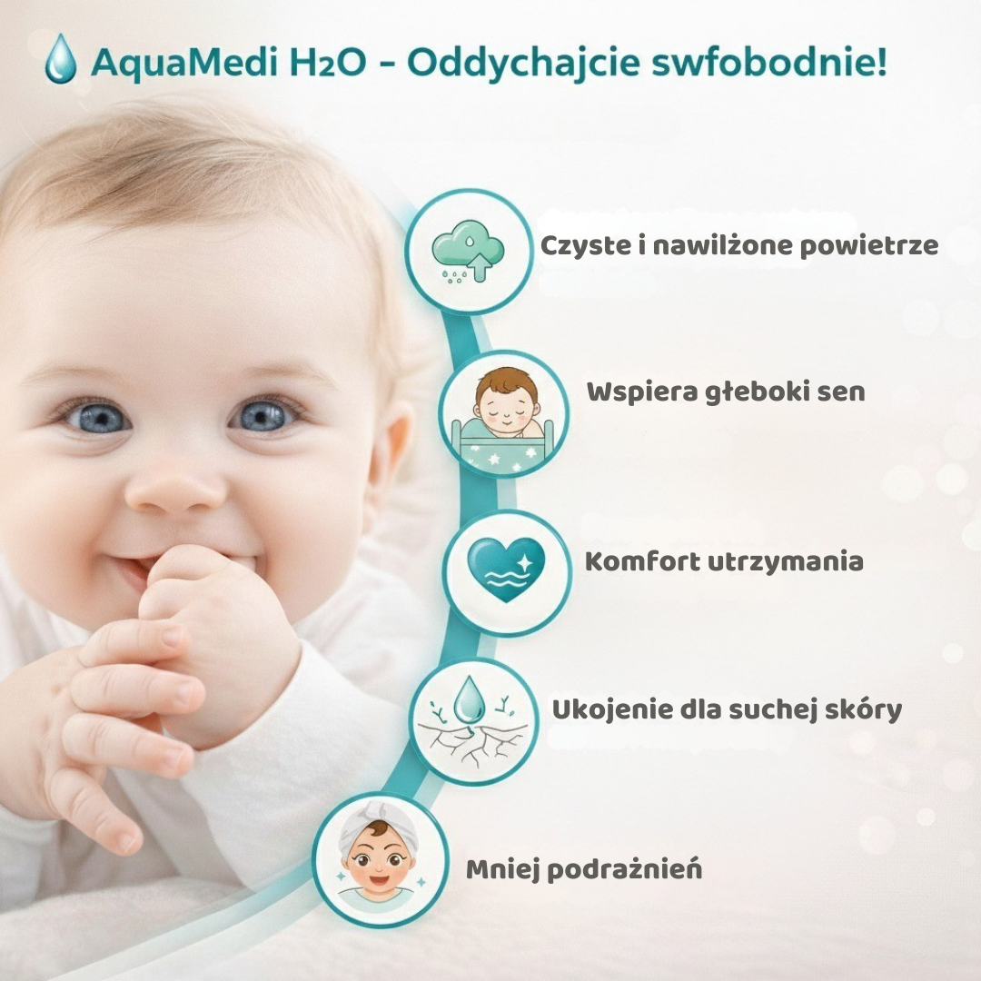 AquaMedi H2O pomaga utrzymać bardziej przyjazny mikroklimat w pokoju dziecka.